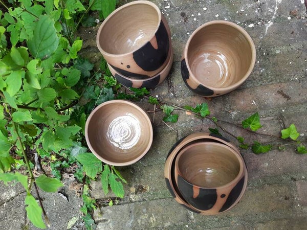 De potten zijn op steengoed temperatuur gebakken en waterdicht.